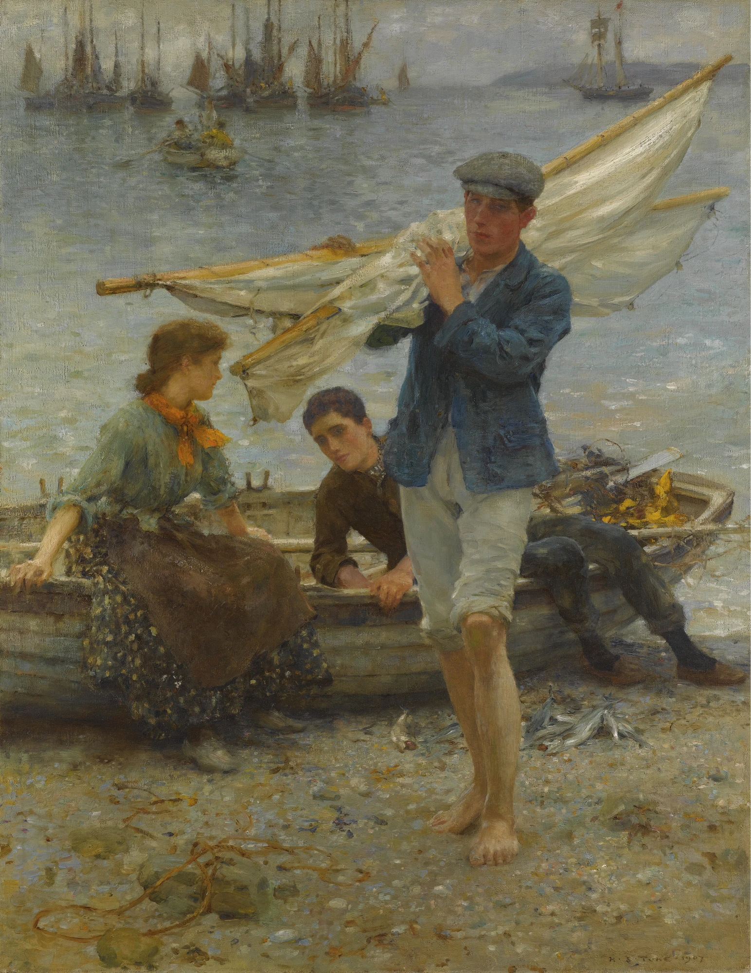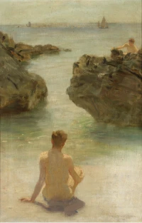 Henry Scott Tuke was a British painter known for his sensitive depictions of young men and boys, often portrayed swimming or at the seaside. Associated with the Newlyn School, Tuke’s work combines naturalism with a delicate use of light and color. His paintings celebrate youth and the human form with an intimate, lyrical quality. Tuke’s contributions helped shape early 20th-century British art, particularly in figurative and marine painting.