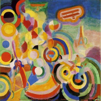 Robert Delaunay was a French painter and key figure in the development of Orphism, a movement combining Cubist structure with bold colour and lyrical abstraction. Alongside his wife, Sonia Delaunay, he explored the interplay of light, rhythm, and movement in art. His iconic series Windows and Eiffel Tower used overlapping shapes and prismatic colour to evoke energy and dynamism. Delaunay was fascinated by modernity—machines, aviation, and urban life—and sought to capture it through colour harmonies. His work helped bridge Impressionism and abstraction, influencing both early 20th-century modernism and the later development of non-objective art.